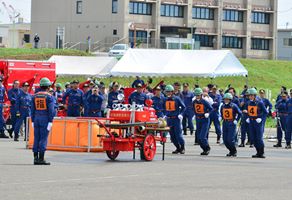 成城消防団は地域ごとに7つの分団があり、普段の訓練の成果を年に一回操法大会で競います。
