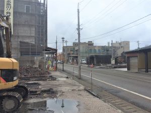 出火元から百メートルほど北側にある、幅員十一メートルあまりの「本町通り」では、延焼を食い止めるべく必死の消火活動が行われました。しかしながら、折からの強風にあおられ、飛び火もあり、残念ながら道路を越えて延焼し、日本海に達するまで延焼しました。